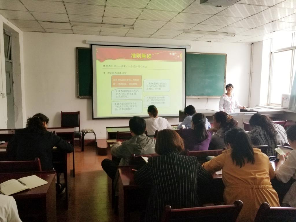 为深入学习贯彻党的十九大精神和中省市纪委全会精神,推动党风廉政建设,把“学党章国法,推进全面从严治党”为主题的廉政教育月活动落到实处,2018年5月23日下午,在朝阳校区一号教学楼203室,机电工程公司党总支组织全体党员上党课,王云侠同志为大家进行了《关于新形势下党内政治生活的若干准则》的解读和培训。