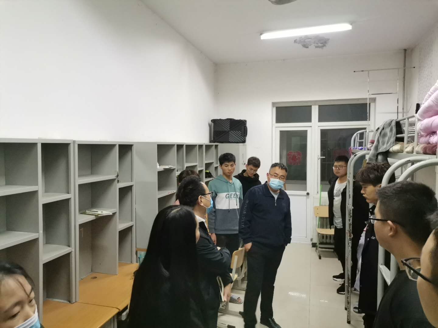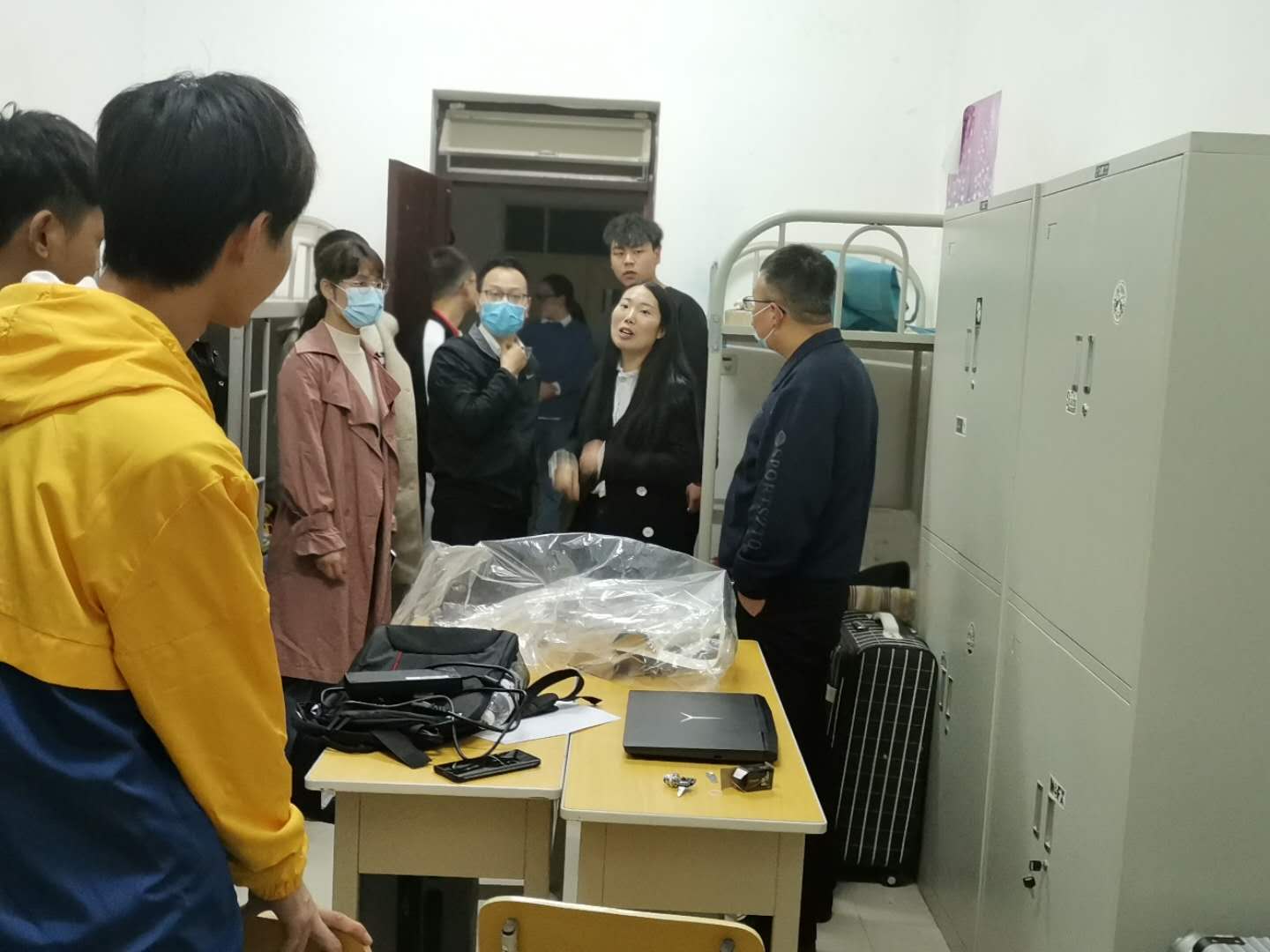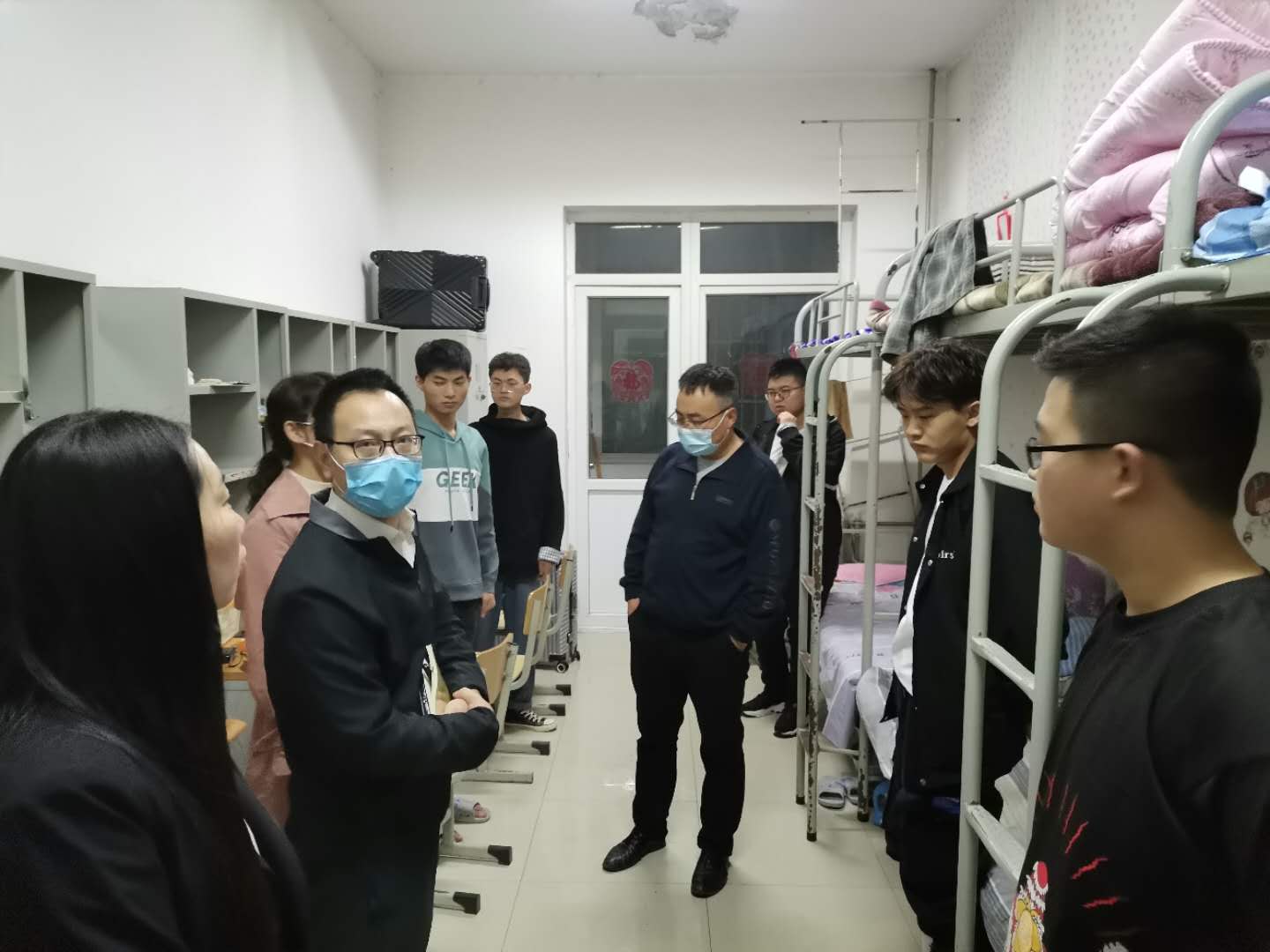 盼望着,盼望着,终于迎来了2020级新生报到,校园里又增加了一份活力。10月12日晚7点,太阳成集团tyc122cc领导班子在副经理邵航的带领下来到新校区美和易思计算机应用技术专业,与专业负责人李倩老师及新生班班主任、讲师前往2020级新生宿舍走访慰问。
