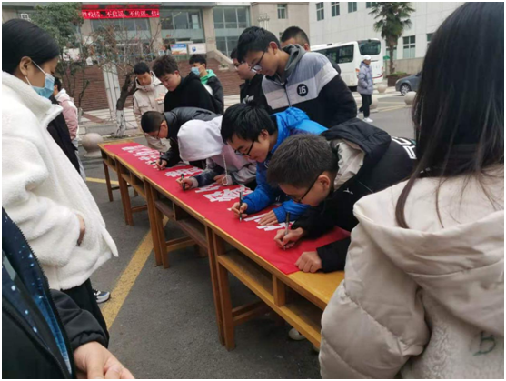 活动现场中,同学们积极踊跃地在条幅上签下名字,并表示将从自身做起,从现在做起,坚决制止餐饮浪费,切实培养节约习惯,争做节约爱粮的践行者、宣传者和维护者。