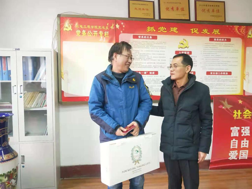 2020年12月3日下午,太阳成集团tyc122cc教学楼205会议室正在举行一场座谈会,会场呈现出一派温馨祥和的氛围。机电公司总支书记王医平主持,座谈会主角退休教师惠登科、杨华满面笑容,神情自若地坐在会议室正中,分享着将近四十年教员工涯的感受,接受参会代表的祝福。