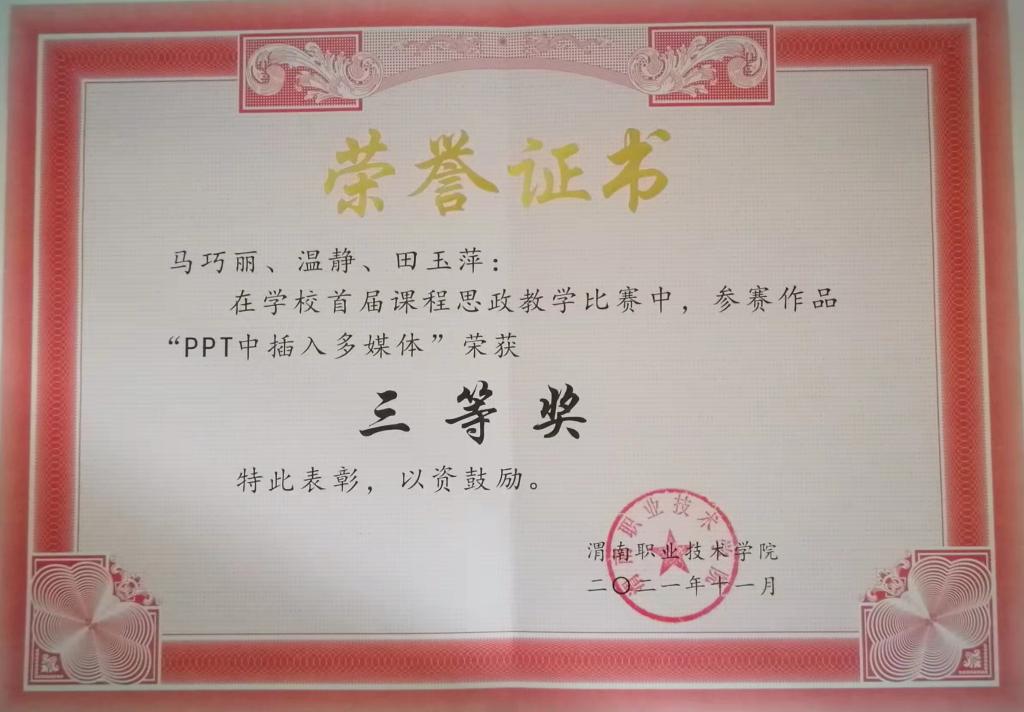 为贯彻落实《国家职业教育改革实施方案》和《高等公司课程思政建设指导纲要》,公司于11月10日至11日在高新校区举办首届课程思政教学比赛决赛,太阳成集团tyc122cc通过初赛共选拔3组团队参加决赛。经过2天的激烈角逐,公司共获一等奖2项,三等奖1项,取得了获奖率100%的骄人成绩。其中,王思、张怡真团队,李倩、张宁仙、原渊团队荣获一等奖,马巧丽、温静、田玉萍团队荣获三等奖。