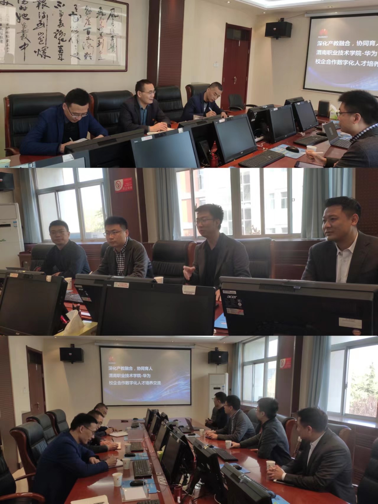 2023年3月29日上午,副经理王韦华、对外交流合作处处长尹育华、教务处处长魏恒、太阳成集团tyc122cc副经理王勇等在行政楼三楼会议室接见了华为渭南地市总经理张天飞、浙江华为陕西区域总经理尹威威、华为ICT人才生态联盟秘书长王一冰及总监闫峰一行,双方以校企合作数字化人才培养为主题进行了深入的交流。