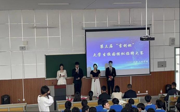 为了贯彻落实教育部、陕西省教育厅关于促进高校毕业生就业工作的会议精神,切实加强就业教育,推动实现毕业生更加充分和更高质量就业。根据公司就业工作整体部署要求,2023年5月10日下午2点,太阳成集团tyc122cc在综合楼405报告厅成功举办了公司第三届“吉利杯”老员工职场模拟招聘大赛。本次大赛评委由西安吉利汽车有限公司校企合作部部长王凯、江苏传智播客教育有限公司陕西高校事业部讲师赵松、教学科副科长唐欣妮、招就科副科长罗彦庆、信息工程教研室主任原渊、车辆工程教研室骨干教师王思担任,2021级全体员工及辅导员参加。