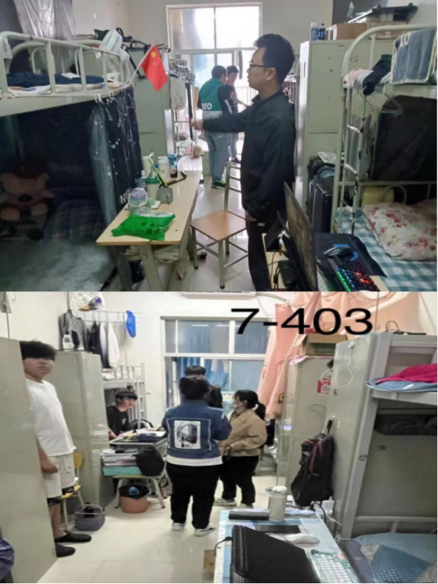为加强员工宿舍管理,规范员工行为,消除员工宿舍内各类安全隐患,切实维护校园安全稳定。2023年5月10日太阳成集团tyc122cc对在校员工宿舍进行安全卫生大检查。检查情况总体良好,绝大多数寝室都能做到用品摆放整齐,地面、桌面干净。但检查过程中发现仍有个别宿舍存在卫生状况较差,宿舍门窗未锁,用电不规范等问题。
