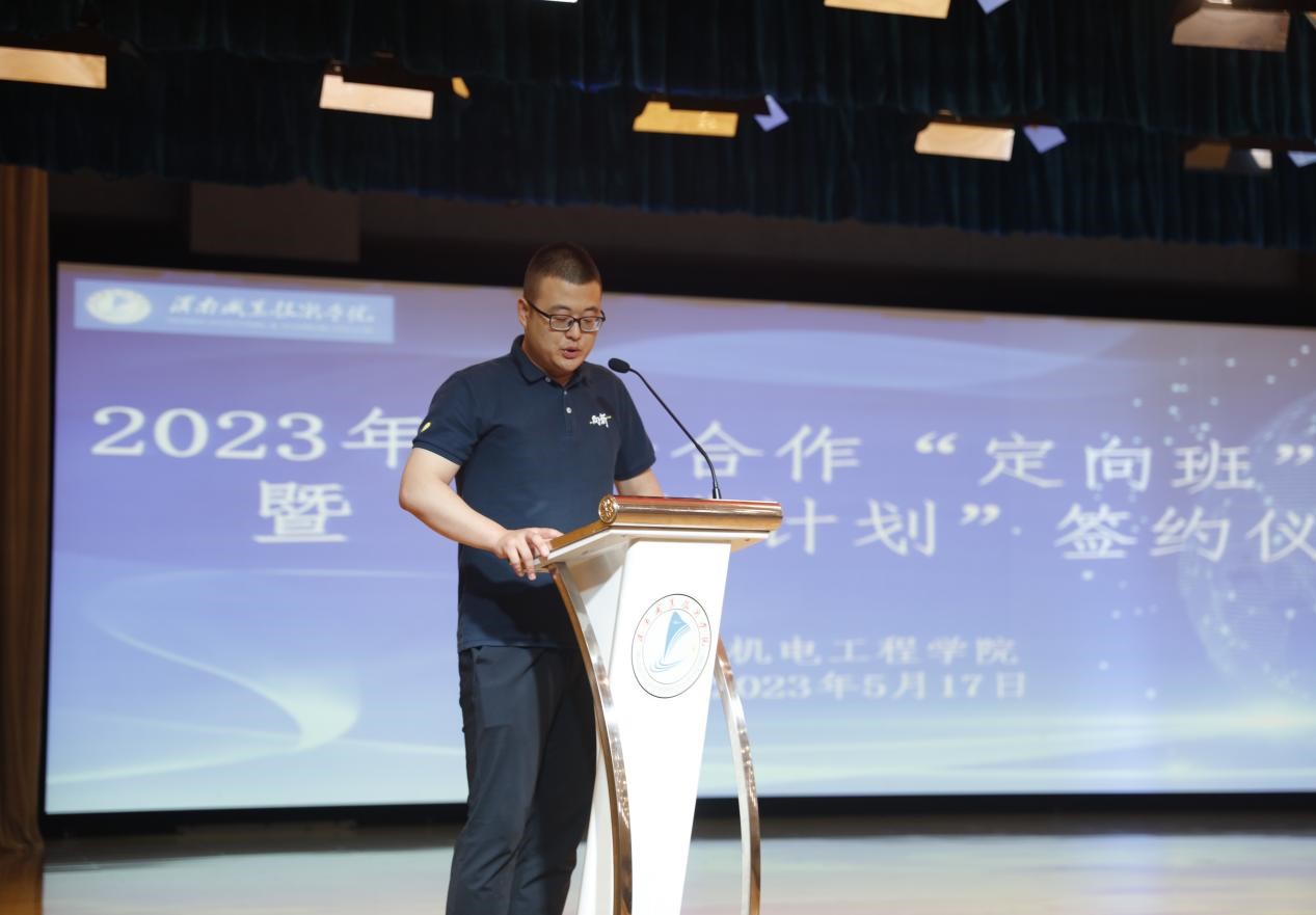 王韦华副经理对本次签约仪式活动做讲话,他指出,公司同吉利集团持续开展校企合作、产教融合、现代学徒制定向班,将成为校企双方协同发展的新起点。要继续坚持互相支持、互相渗透、团队共建、资源共享的原则,以企业的需求为动力,推进合作育人、加快课程体系的改革,加快专业结构的调整,不断加强沟通,扩大合作领域,提高合作水平,努力形成优势互补、互惠互利、相互促进、双方共赢的良好局面。希望通过双方的共同努力,精诚合作,把“成蝶班”办的越来越好,为社会和企业培养出素质高、能力强、技术过硬的优质人才,促进公司职业教育高质量发展。