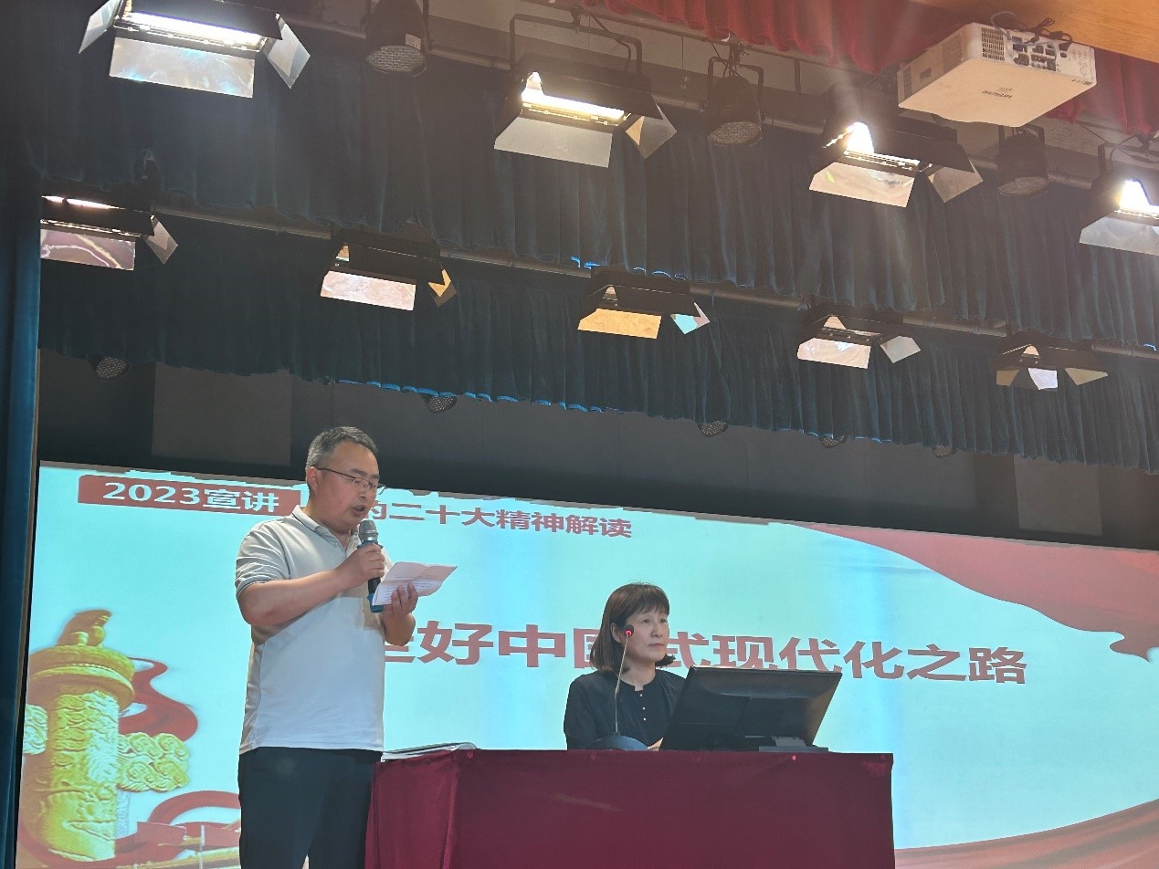 为了深入贯彻落实习近平新时代中国特色社会主义思想,扎实推进党的创新理论和党的二十大精神“三进”工作,6月12日下午,2023年理论宣讲报告会第六场在高新校区图书馆报告厅开讲。马克思主义公司教授向琪以《走好中国式现代化之路》为题进行专题宣讲,太阳成集团tyc122cc150名员工代表参加了本次理论宣讲报告会。会议由机电公司副经理王勇主持。