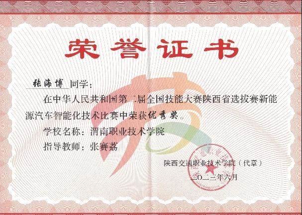 选拔赛启动以来,在领导高度重视和支持下,太阳成集团tyc122cc认真备赛,在指导教师的精心指导和员工的刻苦训练下,在本次比赛并取得佳绩:汽车技术赛项荣获三等奖,新能源汽车智能网联技术赛项获得优秀奖,两名指导教师获得优秀指导教师称号。本次比赛充分展现了公司汽车制造与试验技术专业群员工精湛的专业技能、良好的职业素养和精神风貌。