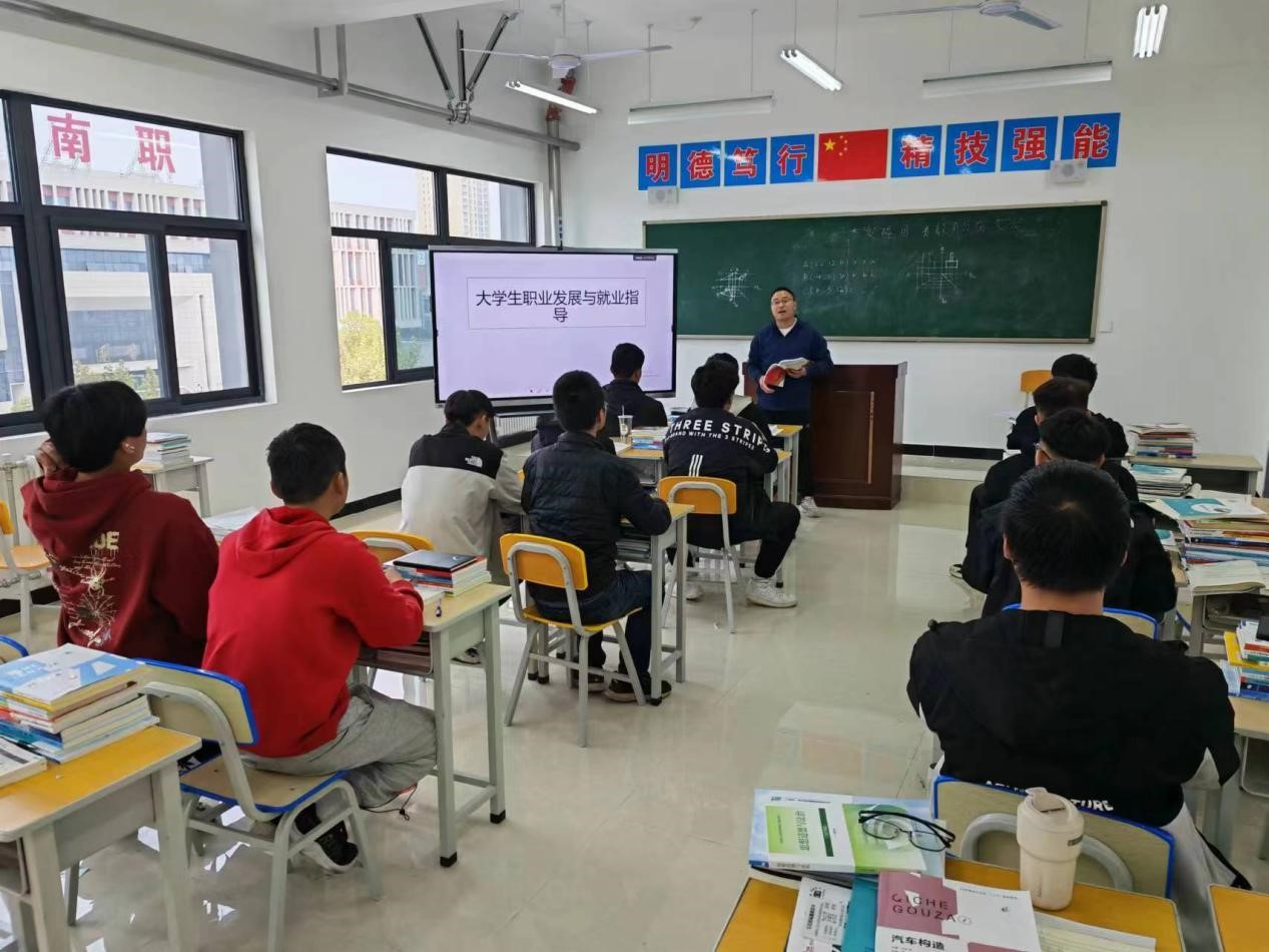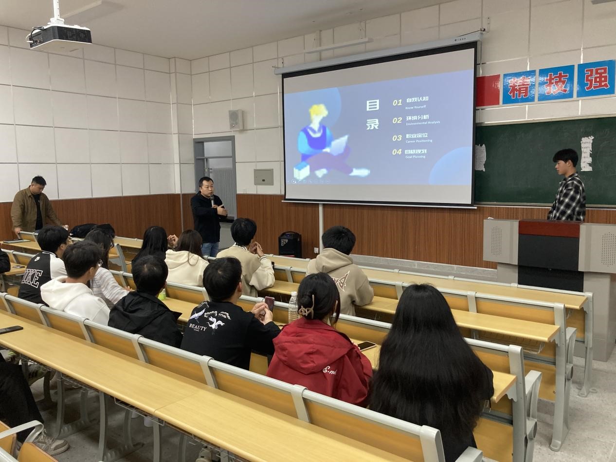 机电工程公司党总支书记王医平、副书记杨鹏、副经理王勇、招就科科长罗彦庆、办公室主任同晶、专业教师张侨承担本公司《老员工职业发展与就业指导》课程的教学工作,涉及2023级6个专业、15个班级、418名同学。各任课教师结合自身教学和实践经验,为同学们带来了一场精彩纷呈的课程,内容涵盖职业生涯规划、自我职业特质探索、就业概况与前景分析、求职笔试面试技巧等多个方面,既有专业理论知识的传授,也有实际操作的演练,课程形式丰富多样。