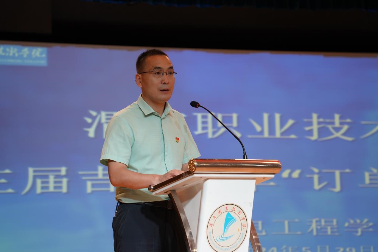 王医平对会议内容进行了总结,此次订单班成立仪式的举办,为公司专业群建设、引领专业建设提供了新思路和新方法。公司将以此次战略合作为契机,深化产业合作、加强与企业战略对接、供需对接、资源对接、优势对接、文化对接,形成产教融合新机制。并对在场的所有即将奔赴实习岗位的2022级订单班同学提出了殷切期望:希望所有同学发扬吃苦耐劳,敬业奉献精神,注重理论知识与实践技能有机结合,在实习岗位严格遵守企业各项工作制度,严格要求自己,展示渭南职院学子风采,心怀感恩,以实际行动来回报母校,从实际行动上做全院员工的楷模,为公司、为企业、为家庭争光。