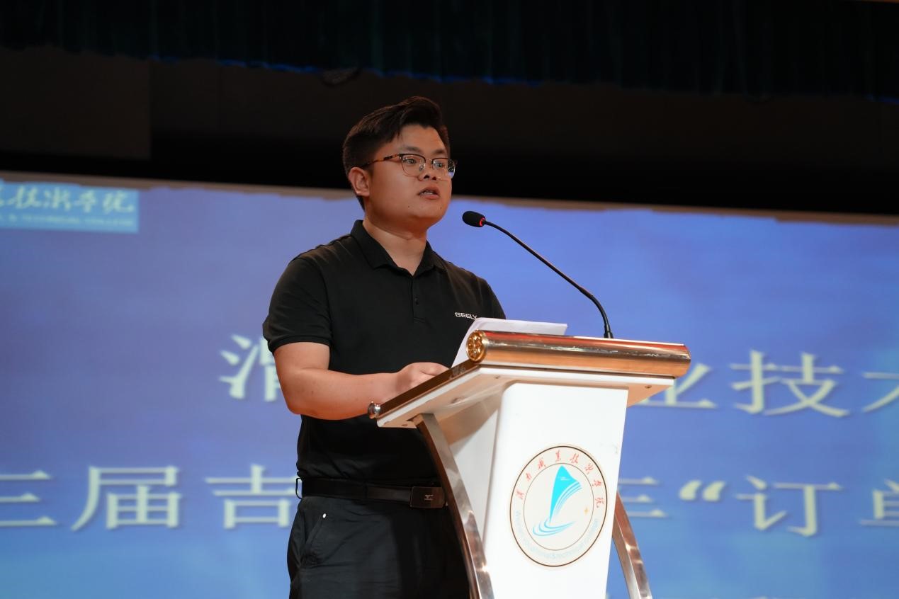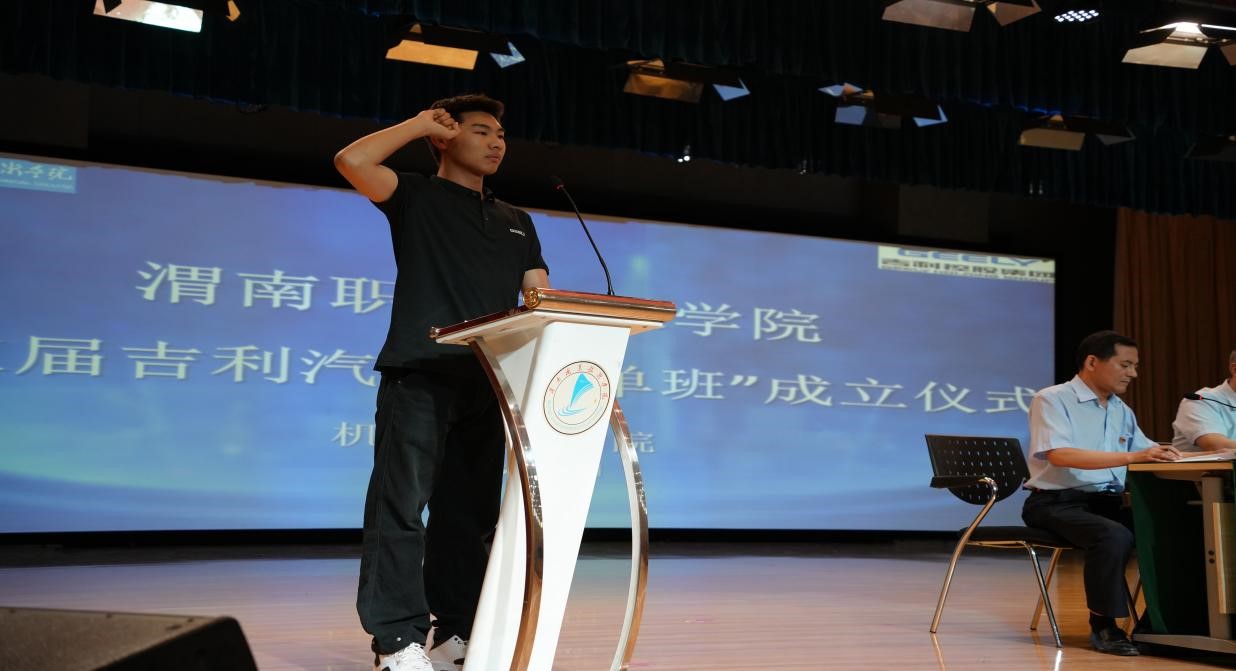 随后,2022级新能源汽车专业杜浪同学代表订单班60名学员领誓誓词,员工王凯作为订单班员工代表发言。承诺将严格按照订单班的要求努力学习,传承工匠精神,为2025中国制造贡献自己的力量。