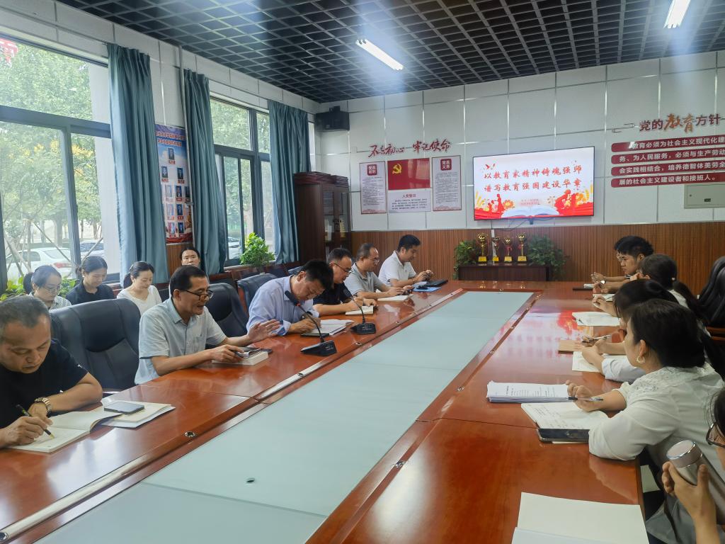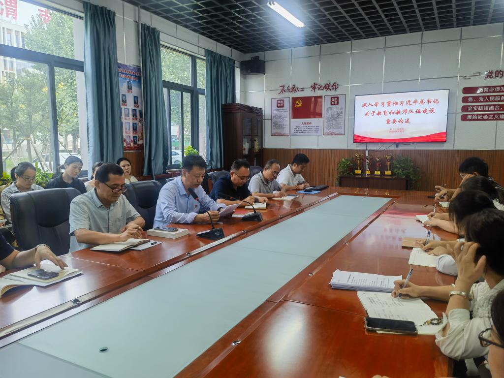 会上,首先由经理关斌组织学习了习近平总书记关于教育和教师队伍建设的重要论述。通过学习,教师们进一步领会了“心有大我、至诚报国的理想信念,言为士则、行为世范的道德情操,启智润心、因材施教的育人智慧,勤学笃行、求是创新的躬耕态度,乐教爱生、甘于奉献的仁爱之心,胸怀天下、以文化人的弘道追求”的深刻内涵。接着,党总支书记王医平领学了《习近平谈治国理政(第五卷)》中《以教育之强夯实国家富强之基》和《朝着建成教育强国目标扎实迈进》相关内容。他要求全体教师以教育家为榜样,牢记“为党育人、为国育才”的初心使命,树立“躬耕教坛、强国有我”的志向和抱负,自信自强、踔厉奋发,将学习成果转化为立德树人、干事创业的实际行动。