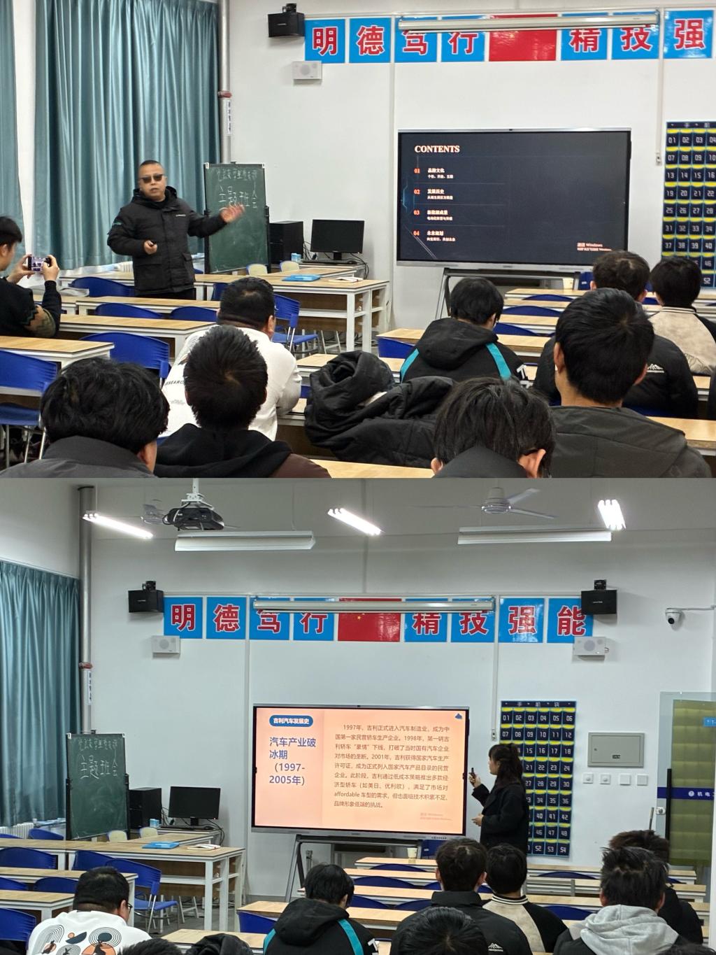 企业专家分享了吉利新能源、智能驾驶领域最新技术与发展战略,现场展示领克07、08等前沿车型,演示汽车营销服务流程,实现产业资源与校内课程的有机融合。