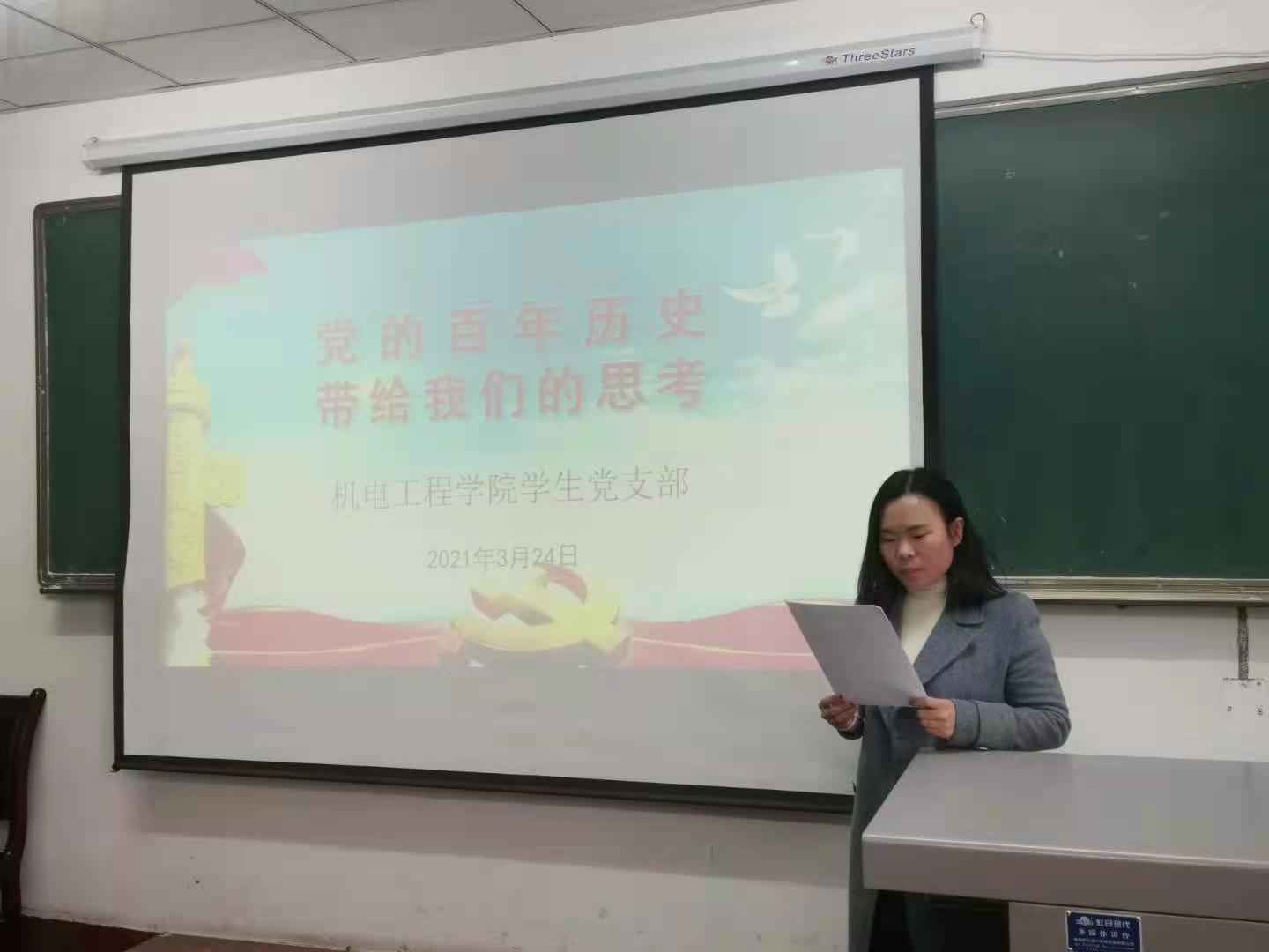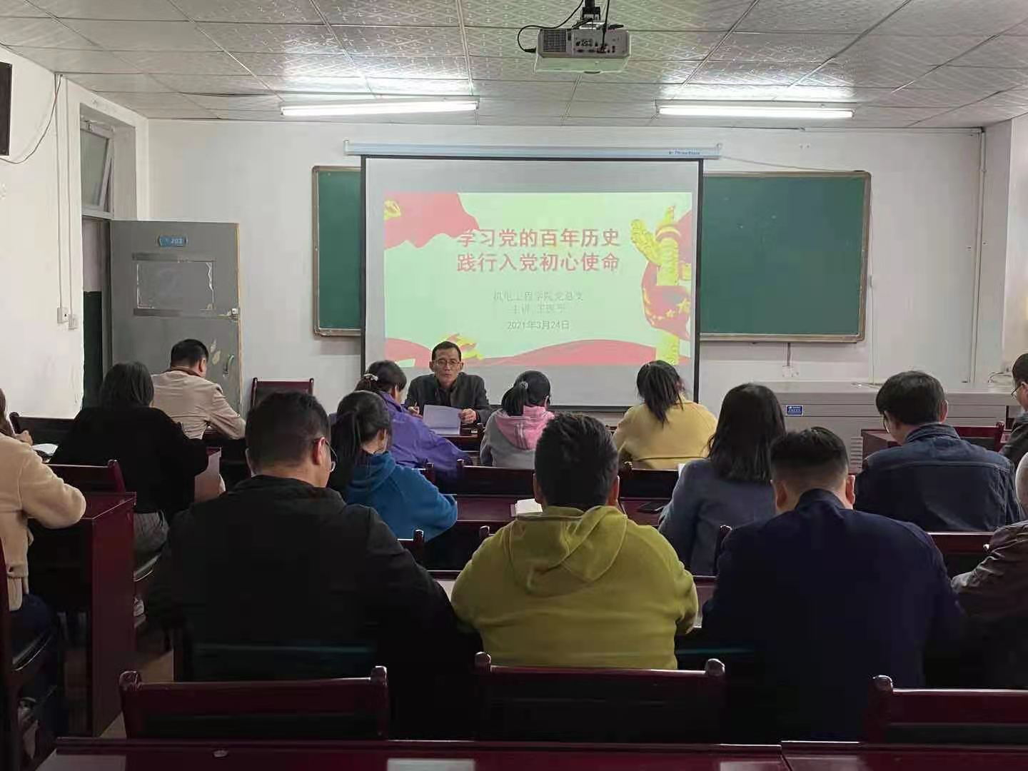 2021年3月23日下午,机电工程公司党总支在朝阳校区一号教学楼203室召开党史学习教育动员大会。会议由党总支部书记王医平同志主持,全体党员参加会议。
