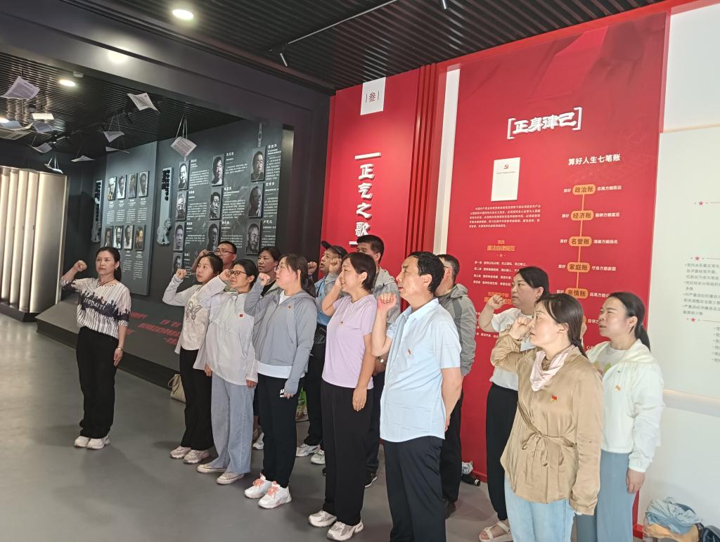 杨震纪念碑前,在王医平书记的带领下,全体党员面对鲜红的党旗,重温入党誓词,回忆入党初心,做出庄严的承诺。随后,在讲解员的引导下,全体党员先后参观了“四知堂”、“杨氏家风厅”、“廉韵厅”、“镜鉴厅”、“清风廊”。学习了“天知、地知、你知、我知”的四知精神;了解淳正家风涵养党风政风社风的传承,感悟着杨震清廉为官的感人事迹和清廉正直、恪勤竭忠的高尚品质,被杨震一生坚守廉洁自律、清正为官的品格所感动,纷纷表示要以杨震为榜样,时刻保持清醒头脑,筑牢拒腐防变的思想防线。