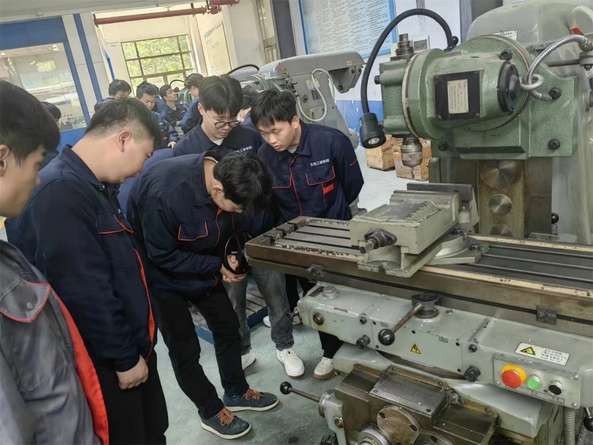 在实训期间,渭南技师公司的带训老师认真向同学们讲解普通车床和普通铣床的操作,指导员工安全规范操作。