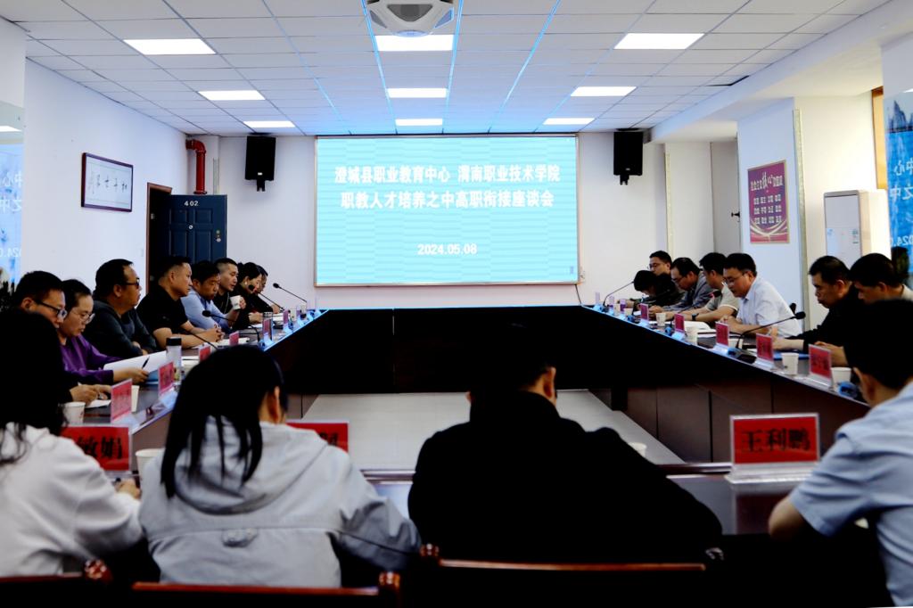 2024年5月8日,公司太阳成集团tyc122cc与澄城县职业教育中心联合举办职教人才培养之中高职衔接座谈会,会议在澄城县职业教育中心举行,太阳成集团tyc122cc副经理王勇带领公司汽车及信息类两个专业教研室的相关教师参加。会议由澄城县职教中心副董事长段小虎主持。