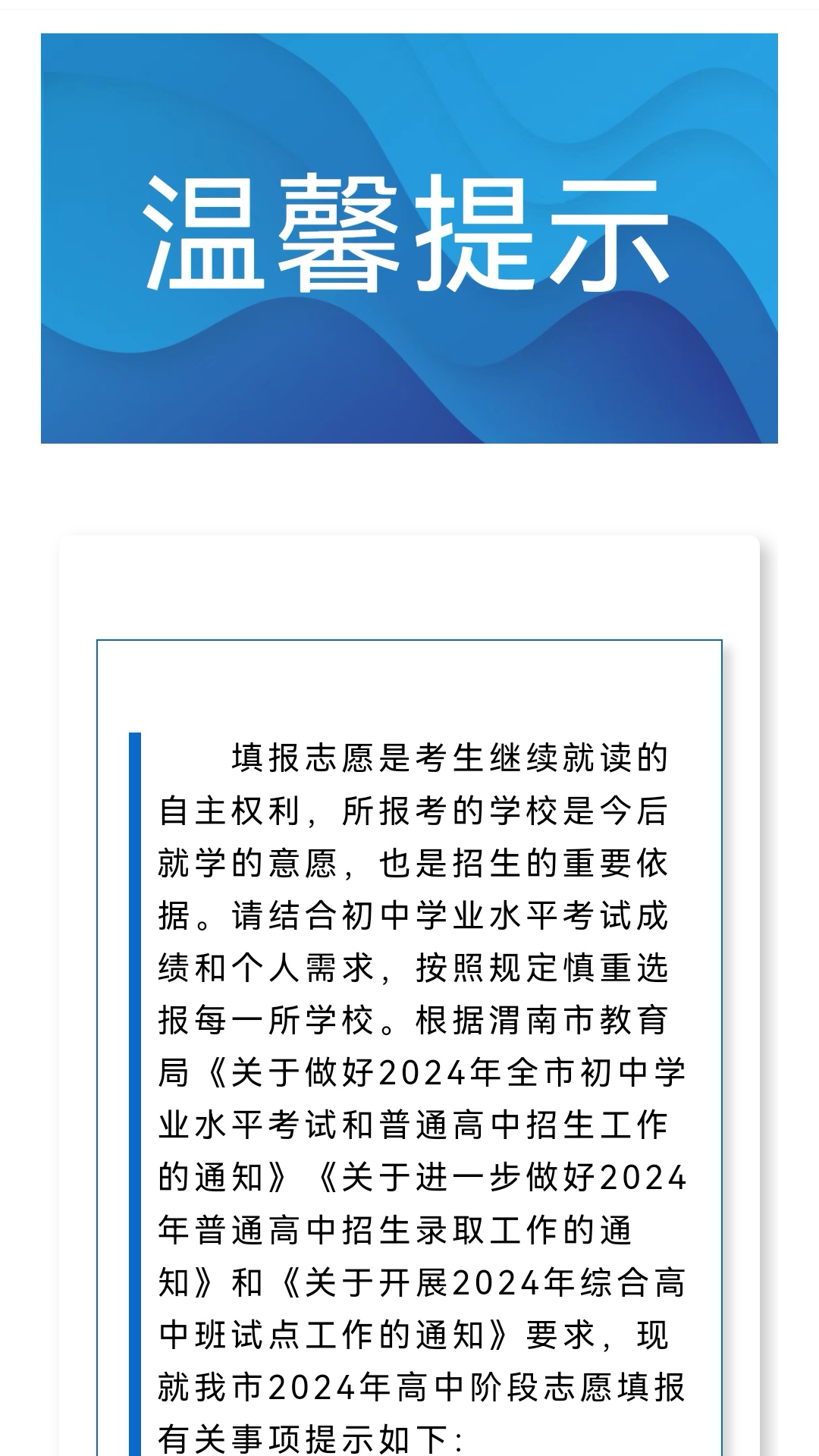 2024年渭南市高中阶段志愿填报温馨提示