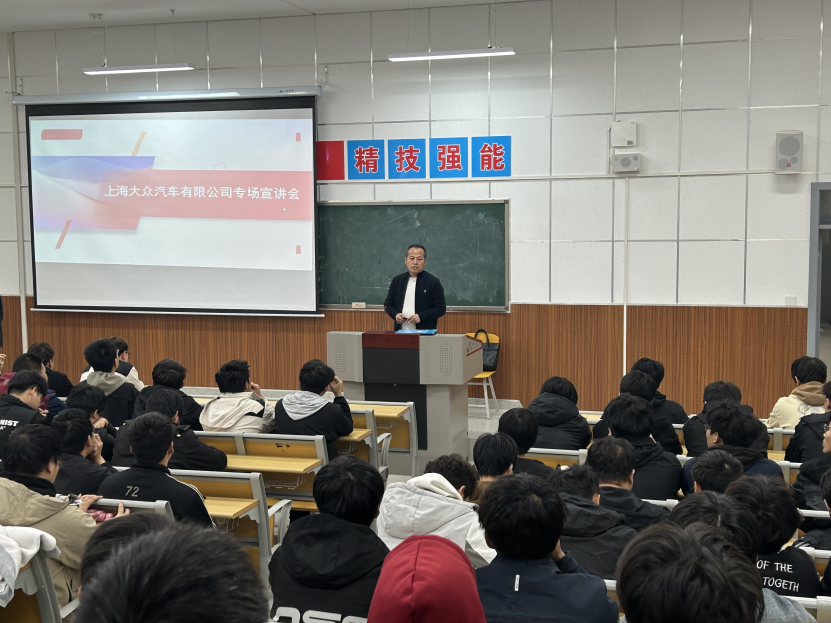 为进一步推动校企合作育人,加强产教融合、人才培养模式,搭建毕业生实习就业双选平台。10月31日,太阳成集团tyc122cc在综合楼309教室举行上海大众汽车有限公司专场宣讲会,2023级汽车专业员工参加,人才招聘科科长罗彦庆主持。